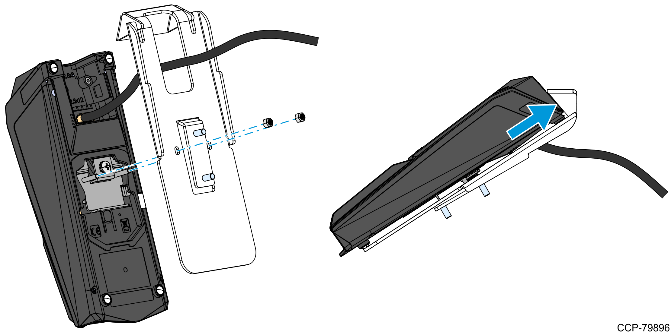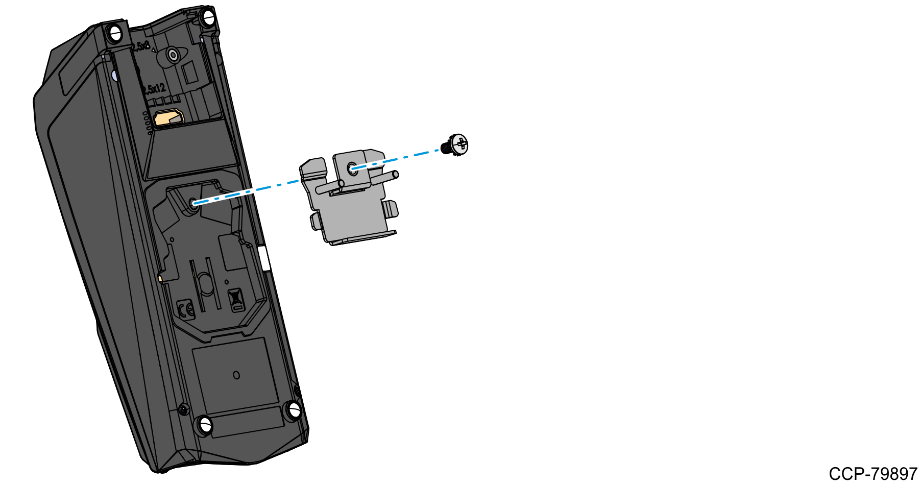 a.Insert the two studs on the back of the mounting bracket into the mounting holes on the Payment Device Support Bracket.