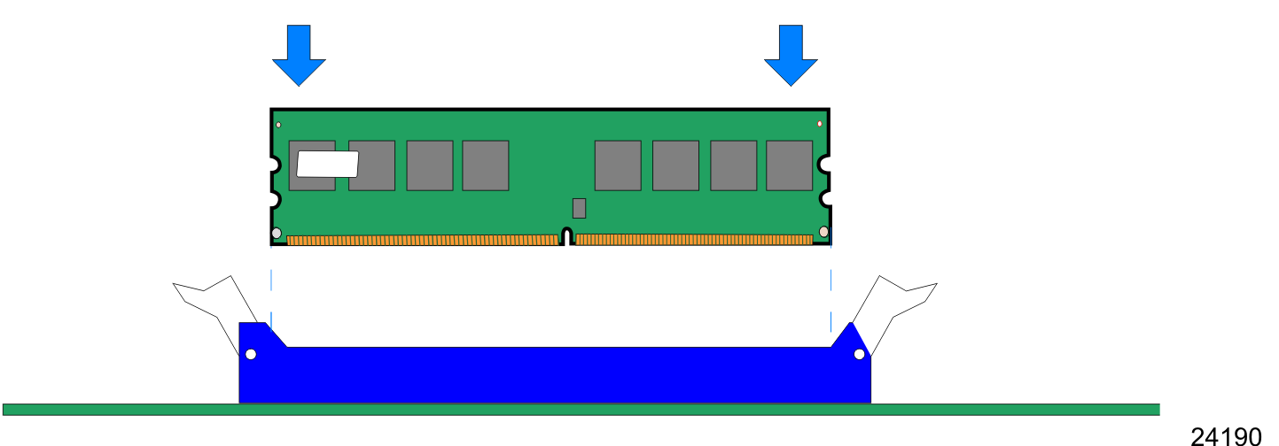 3.Ensure that the edges of the Memory Module engage the latches and that the latches are completely closed, as shown in the image below.