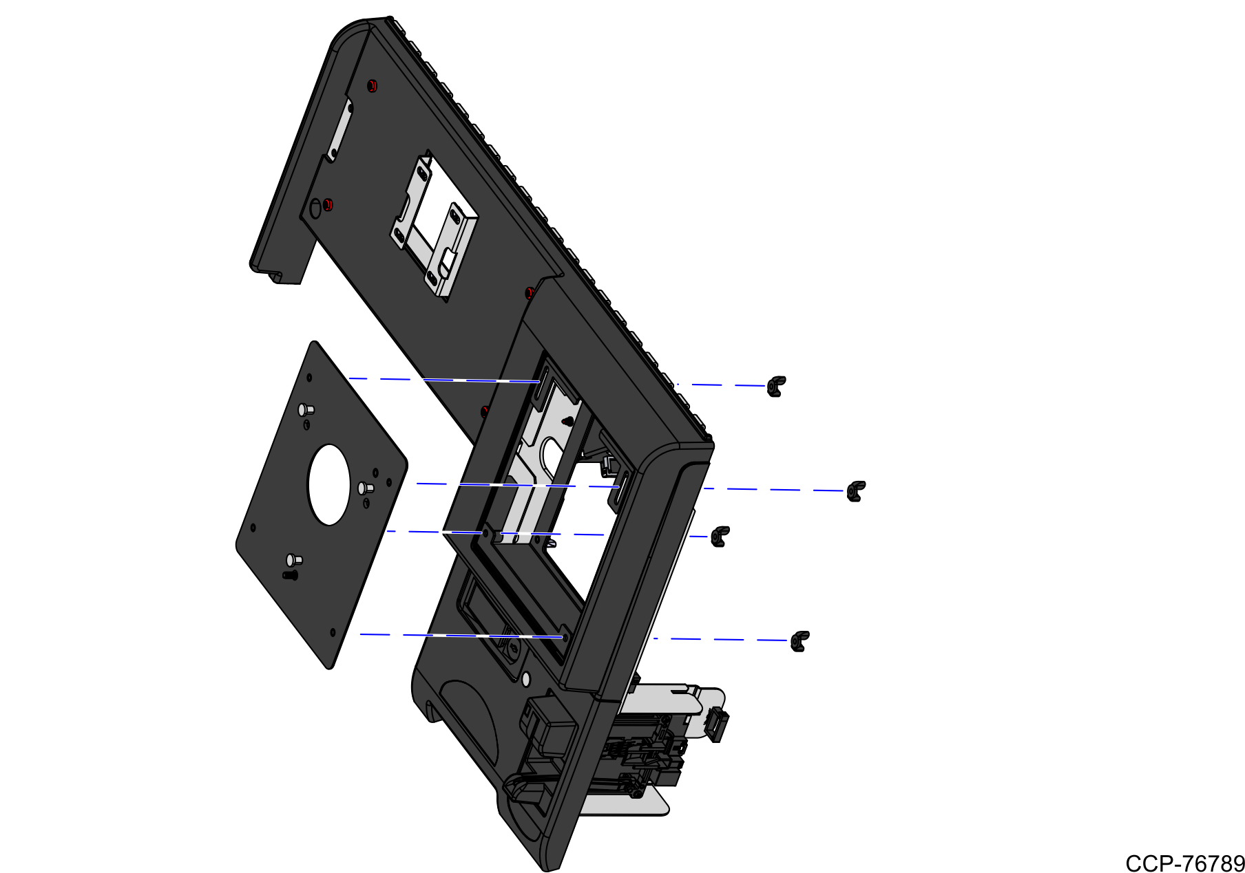 4.Align the PIN Pad Mount to the PIN Pad slot on the Upper Cabinet Door and then secure using four (4) wing nuts. Ensure that the orientation of the PIN Pad mount is the same with the image shown below.