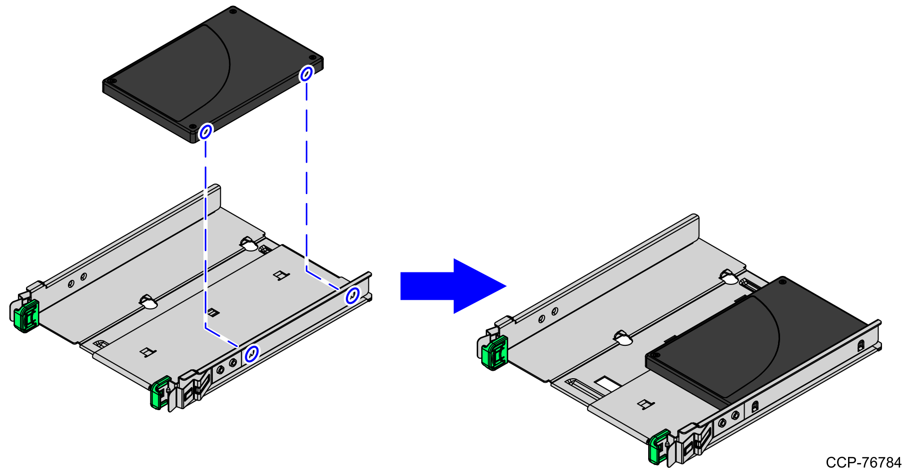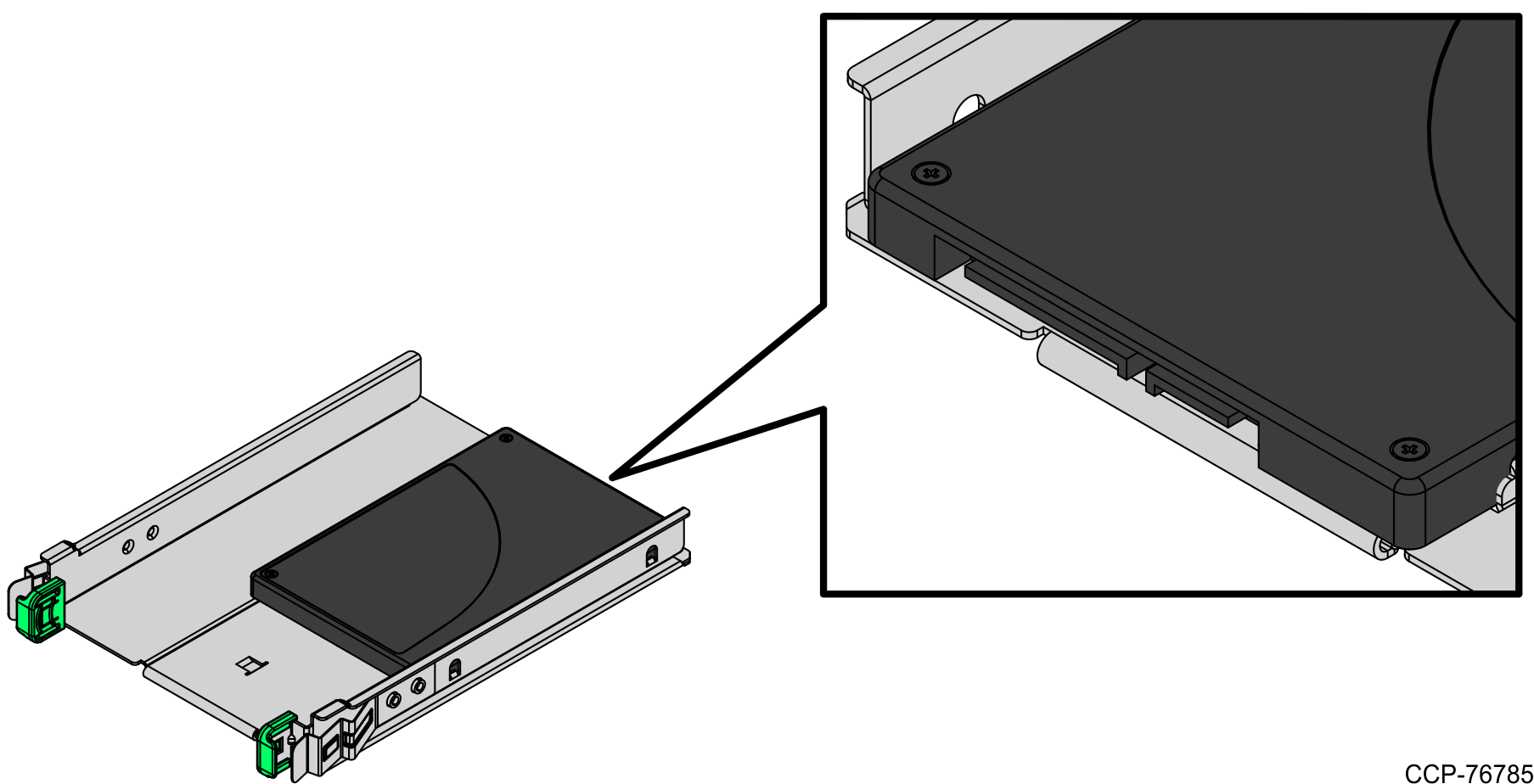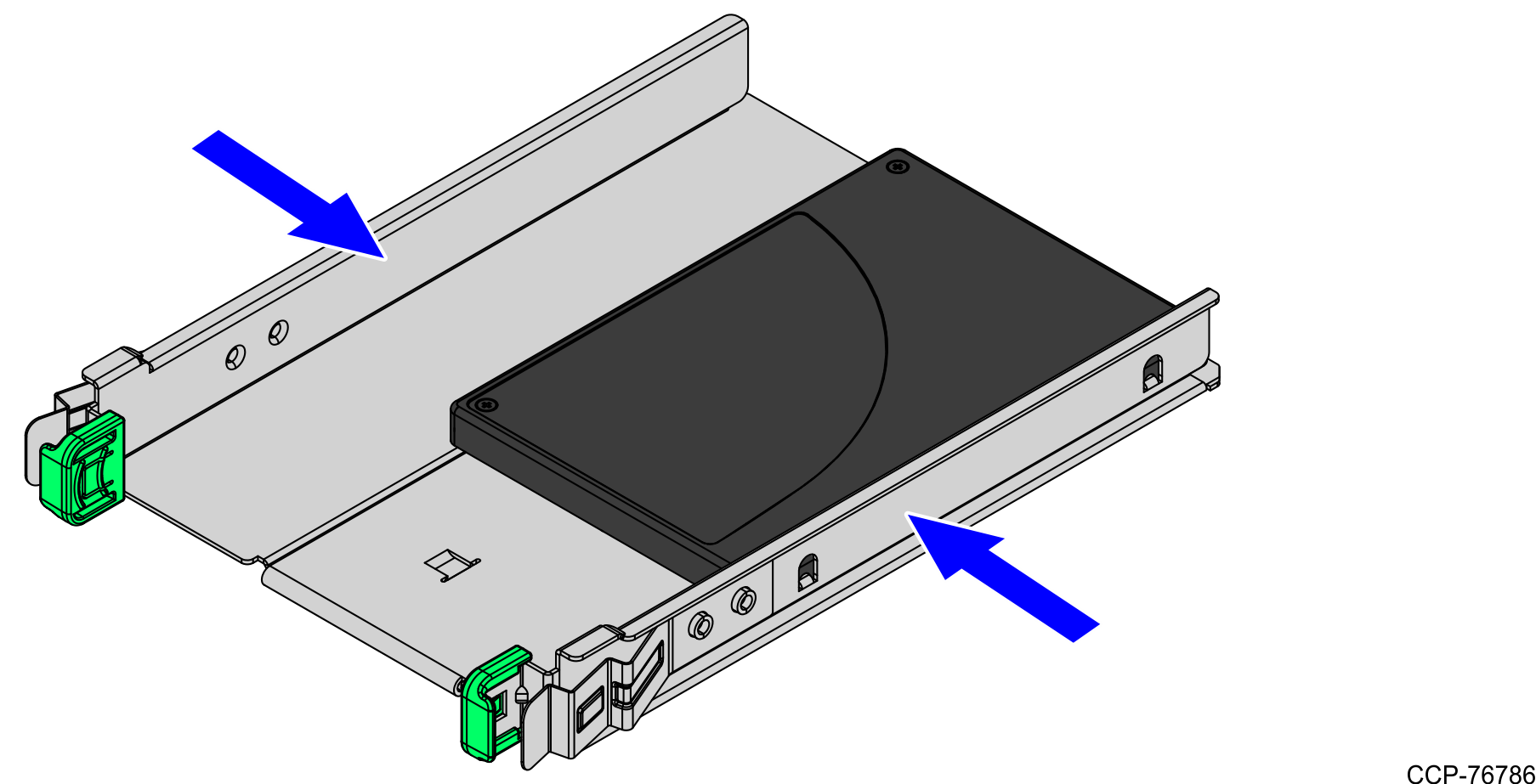 2.Position the SSD on the bracket so that the two (2) holes on its right side are aligned to the small tabs on the inner side of the bracket, as shown in the image below.