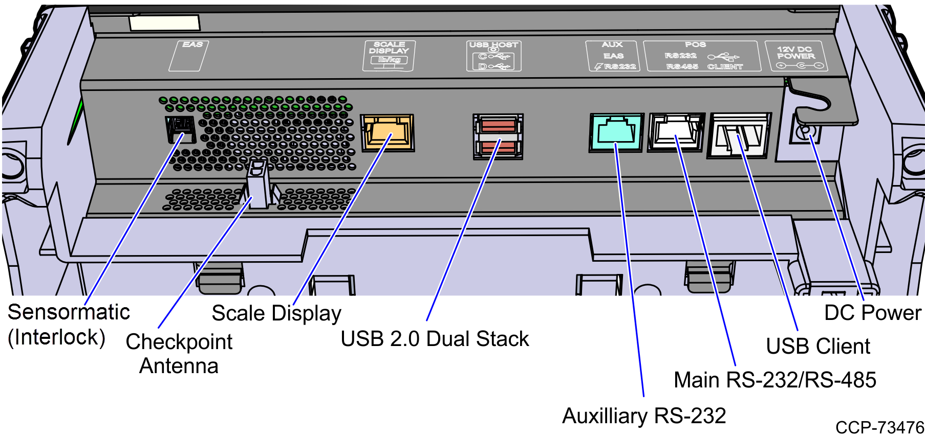 - Connect the scanner cable to the USB Client port on the RealScan 79e (7879e).