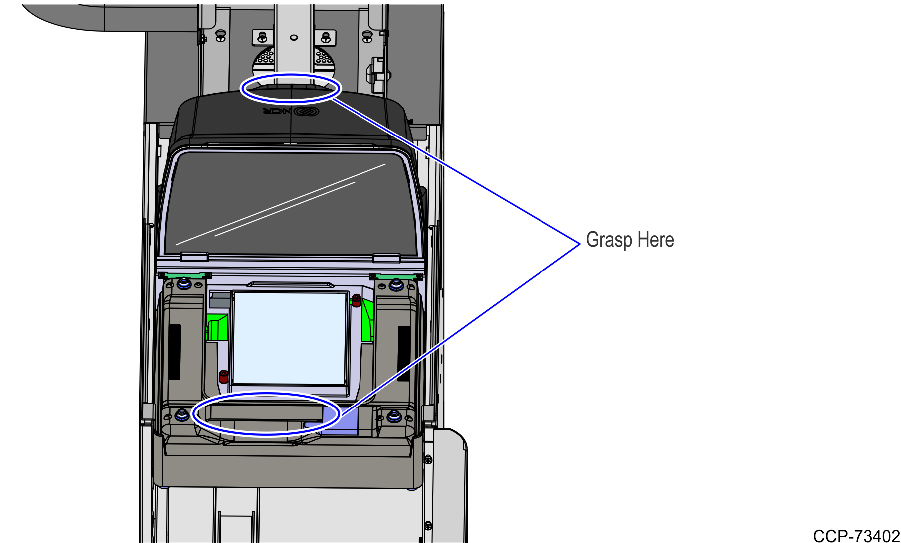 - Verify that the Scanner/Scale Top Plate is correctly aligned with the top of the Scanner/Scale bucket. The sides of the Top Plate must not be hight than the top surface of the SelfServ Checkout unit.Note