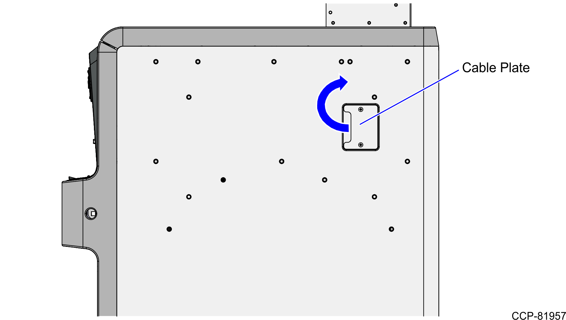 - If necessary, remove the cable plate from the side of the core (next to scanner bucket) and rotate it so that cable access hole is exposed. Secure the cable plate in place using two screws.