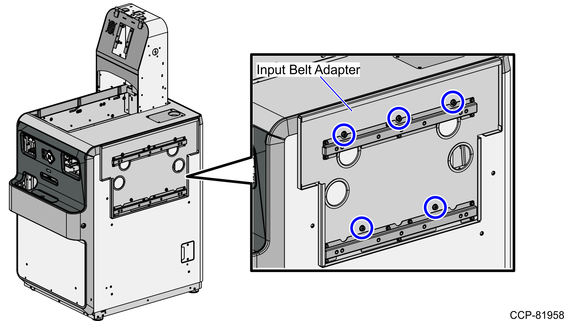 - Attach the Input Plate Adapter Plate to the Core Cabinet using five (5) screws with washers, as shown in the image below.