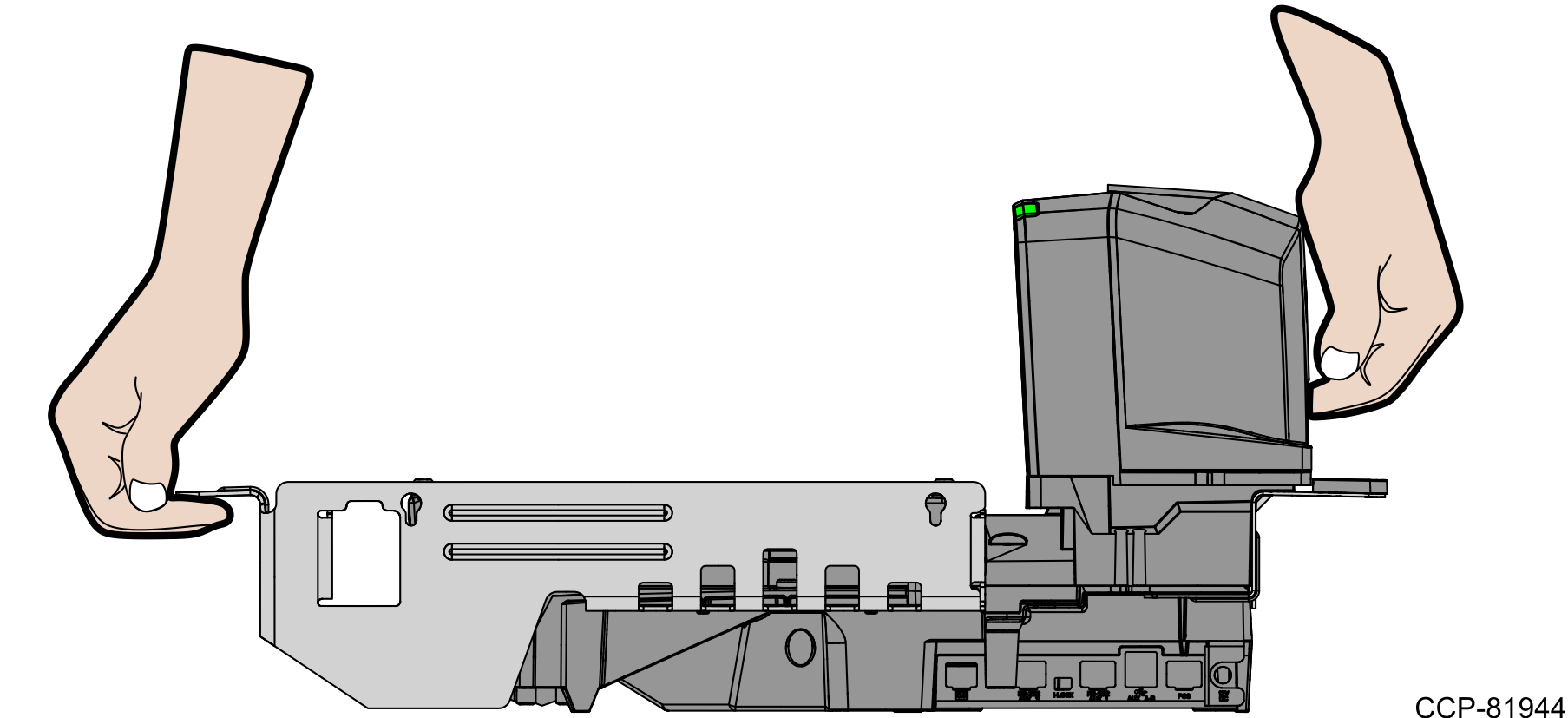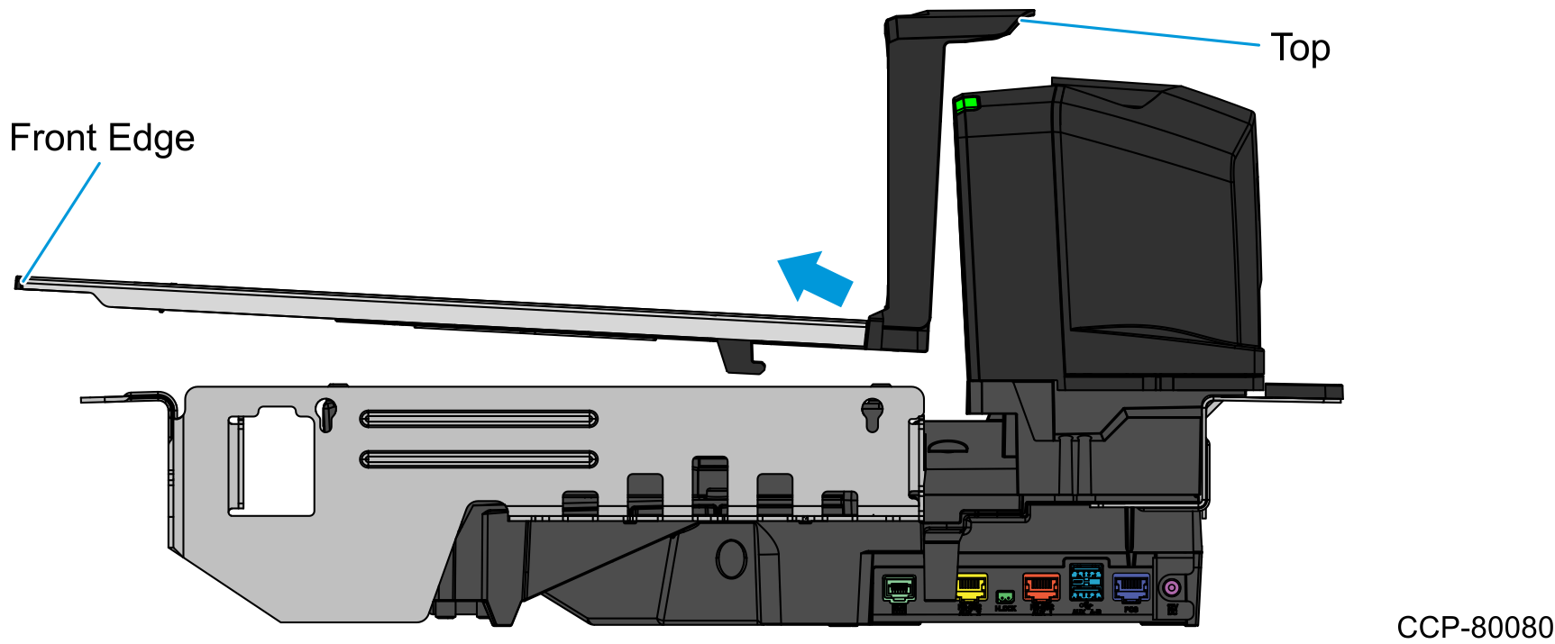 - Hold the front edge and the top of the Top Plate to pull lift it off the Scanner/Scale.