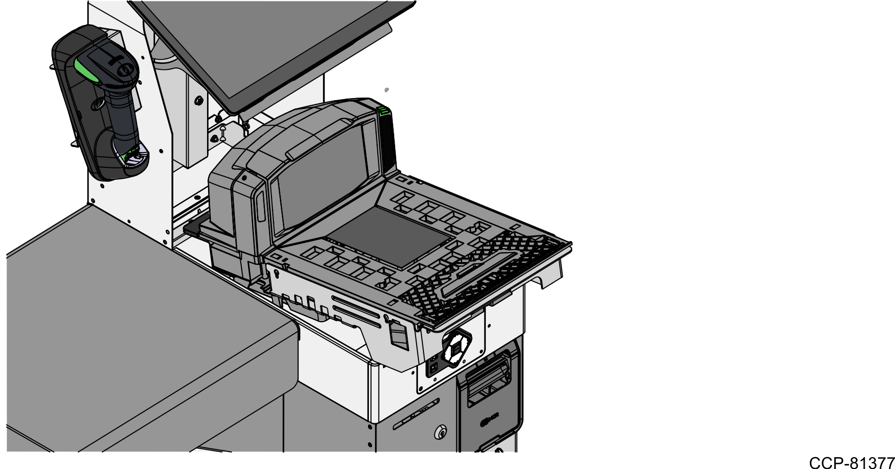 - Slightly tilt the Scanner/Scale to lift it out of the scanner bucket, as shown in the image below.