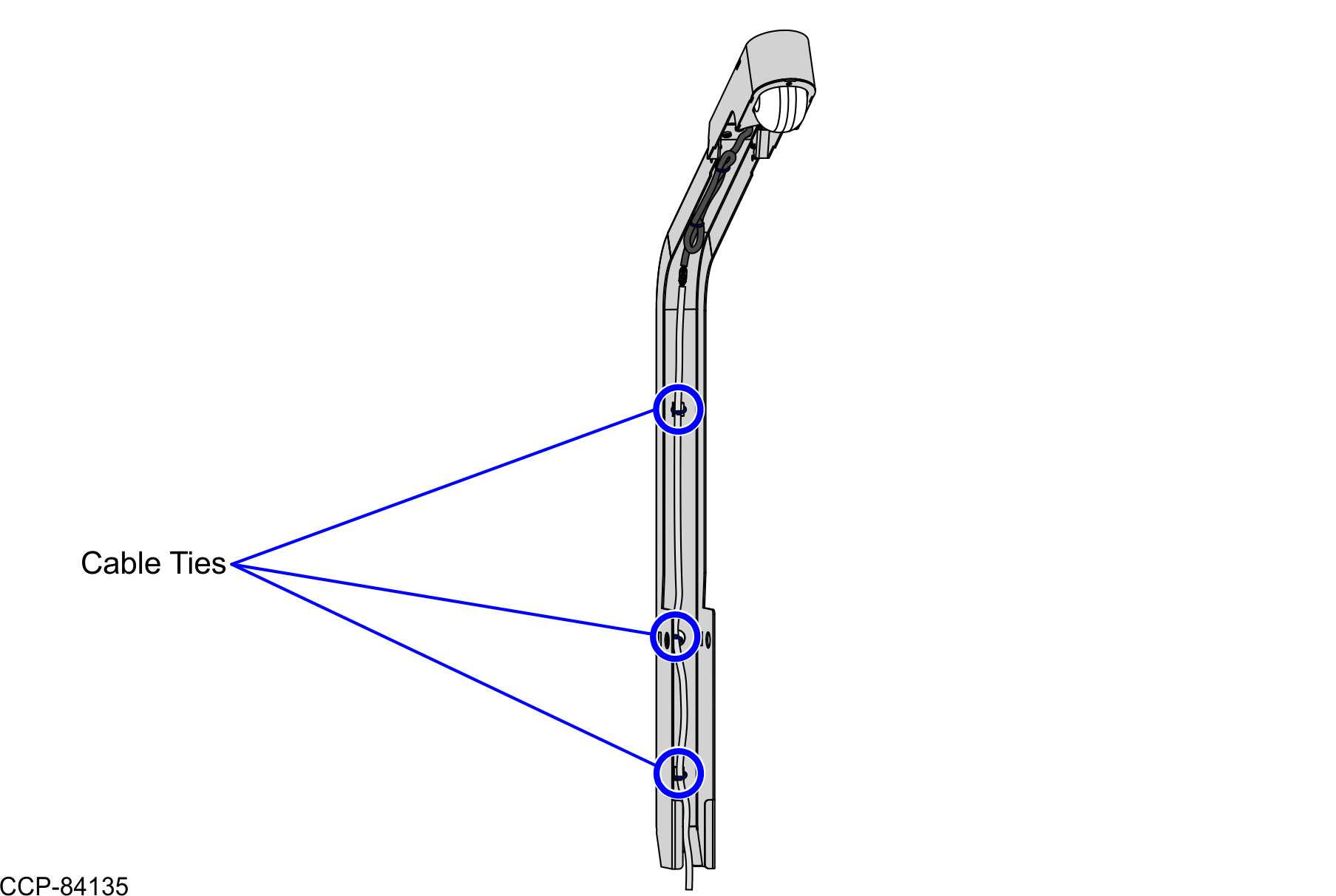 - Secure the LAN Cable to the Tri-Light Cable Channel using three (3) cable ties, as shown in the image below.