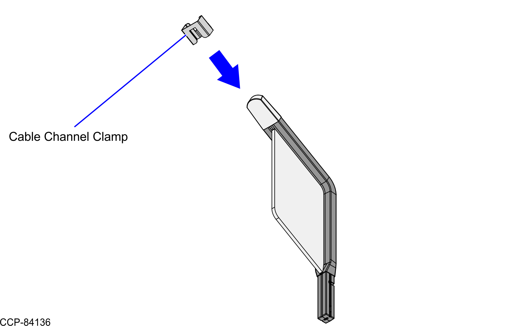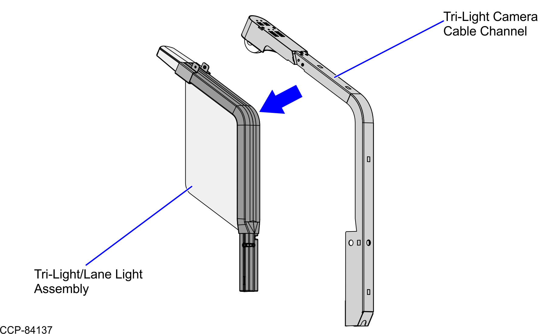 - Slide the Tri-Light Cable Channel Assembly on the Tri-Light/Lane Light Assembly with Cable Channel Clamp.