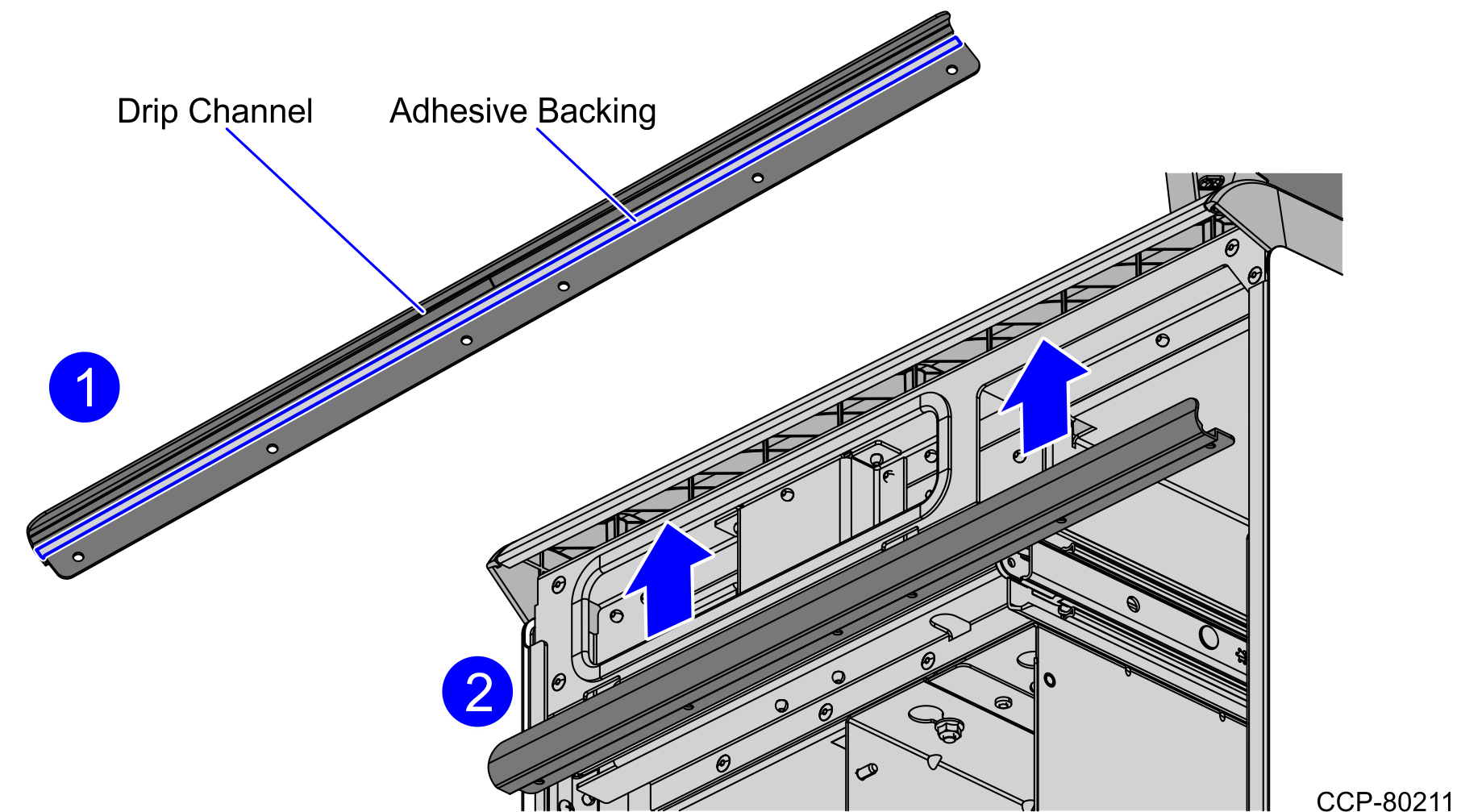 - Remove the adhesive backing from the Drip Channel.