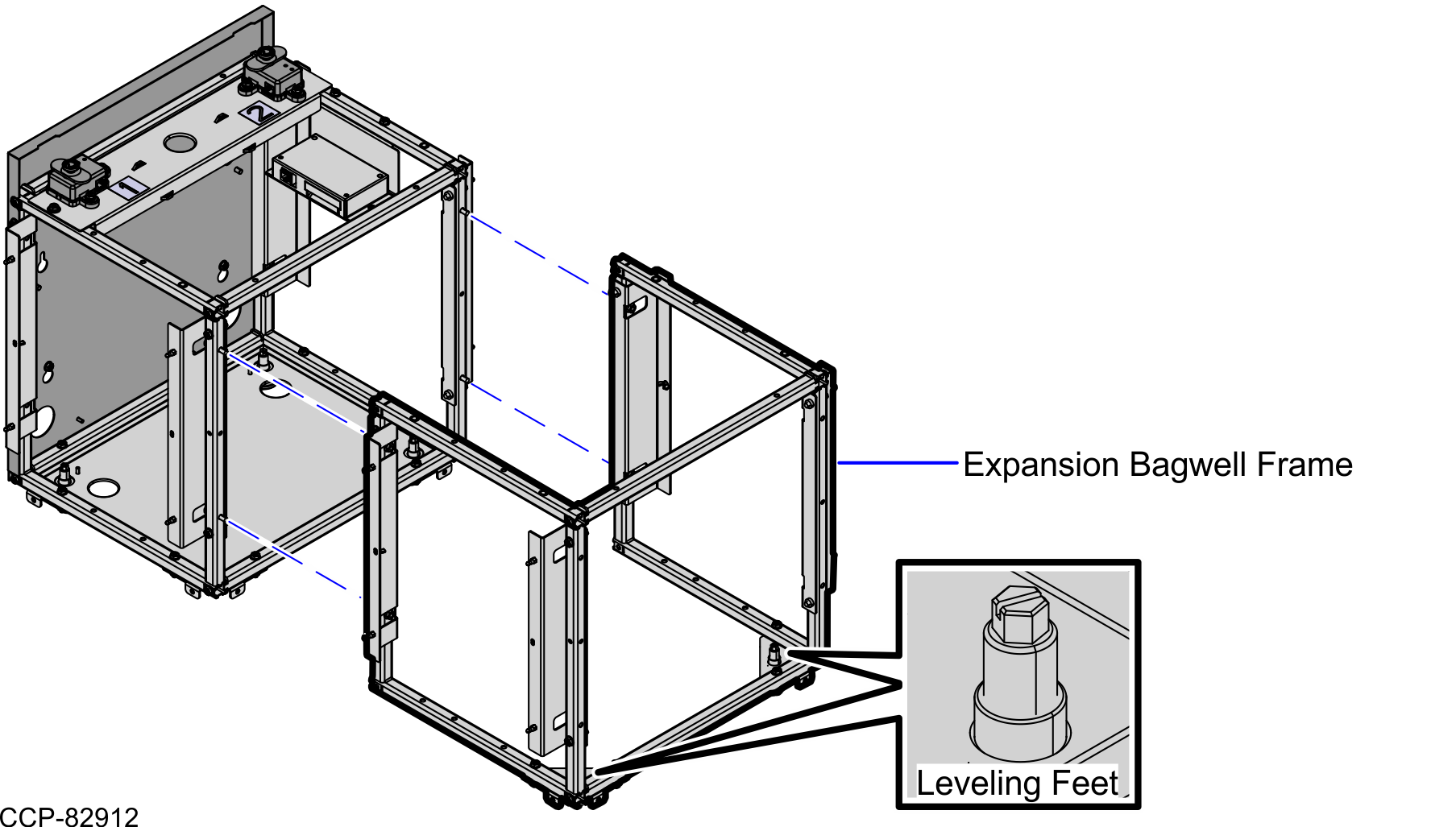 Adjust the Leveling Feet of the Bagwell Expansion Frame, as necessary.
