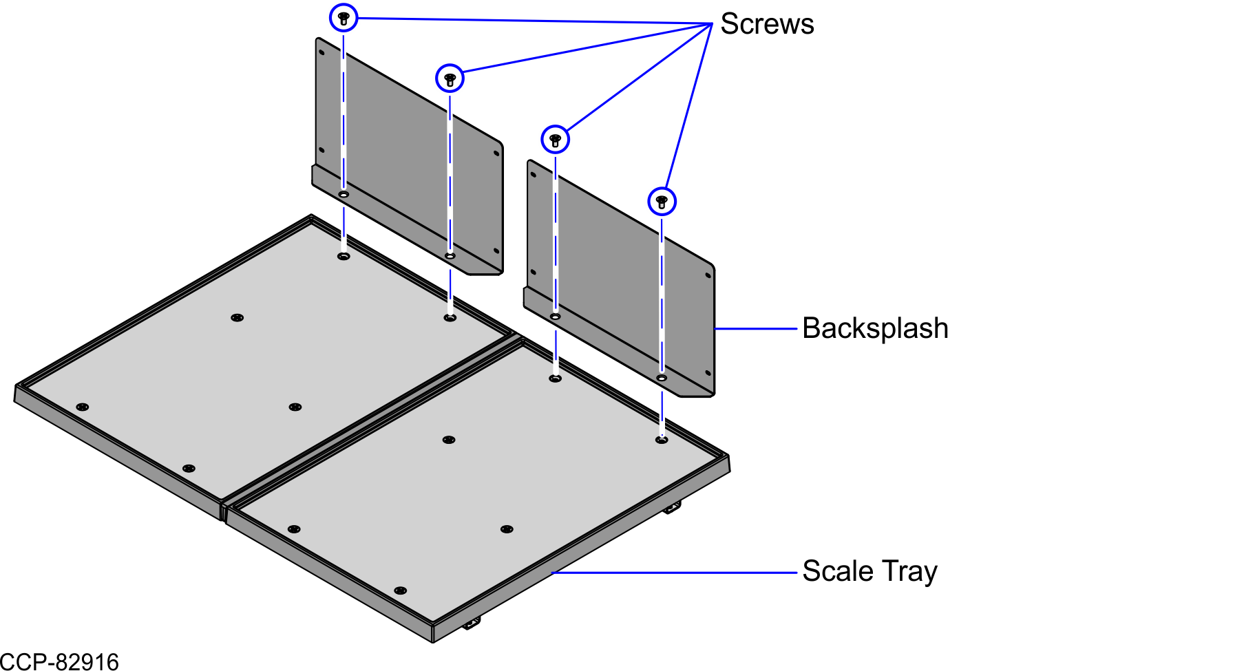 - Attach two (2) Backsplash to the Scale Tray Expansion assembly. Each Backsplash has two (2) screws.