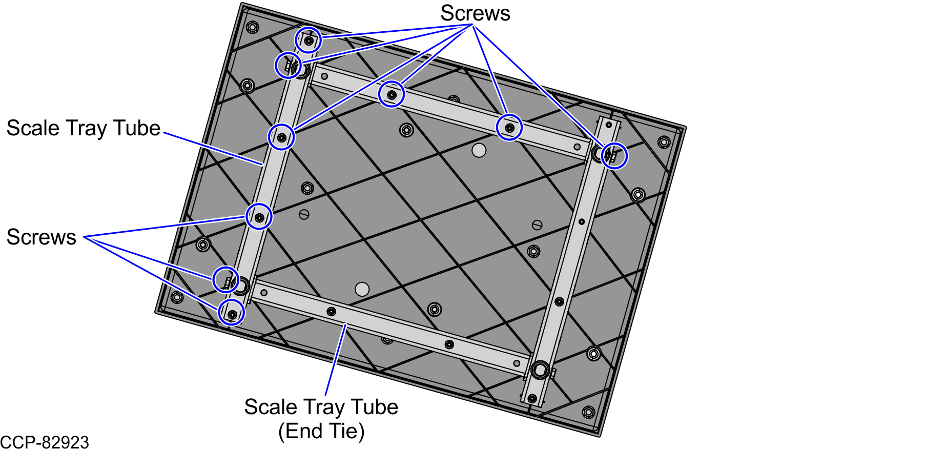 Remove nine (9) screws from the Scale Tray Tubes, as shown in the image below.
