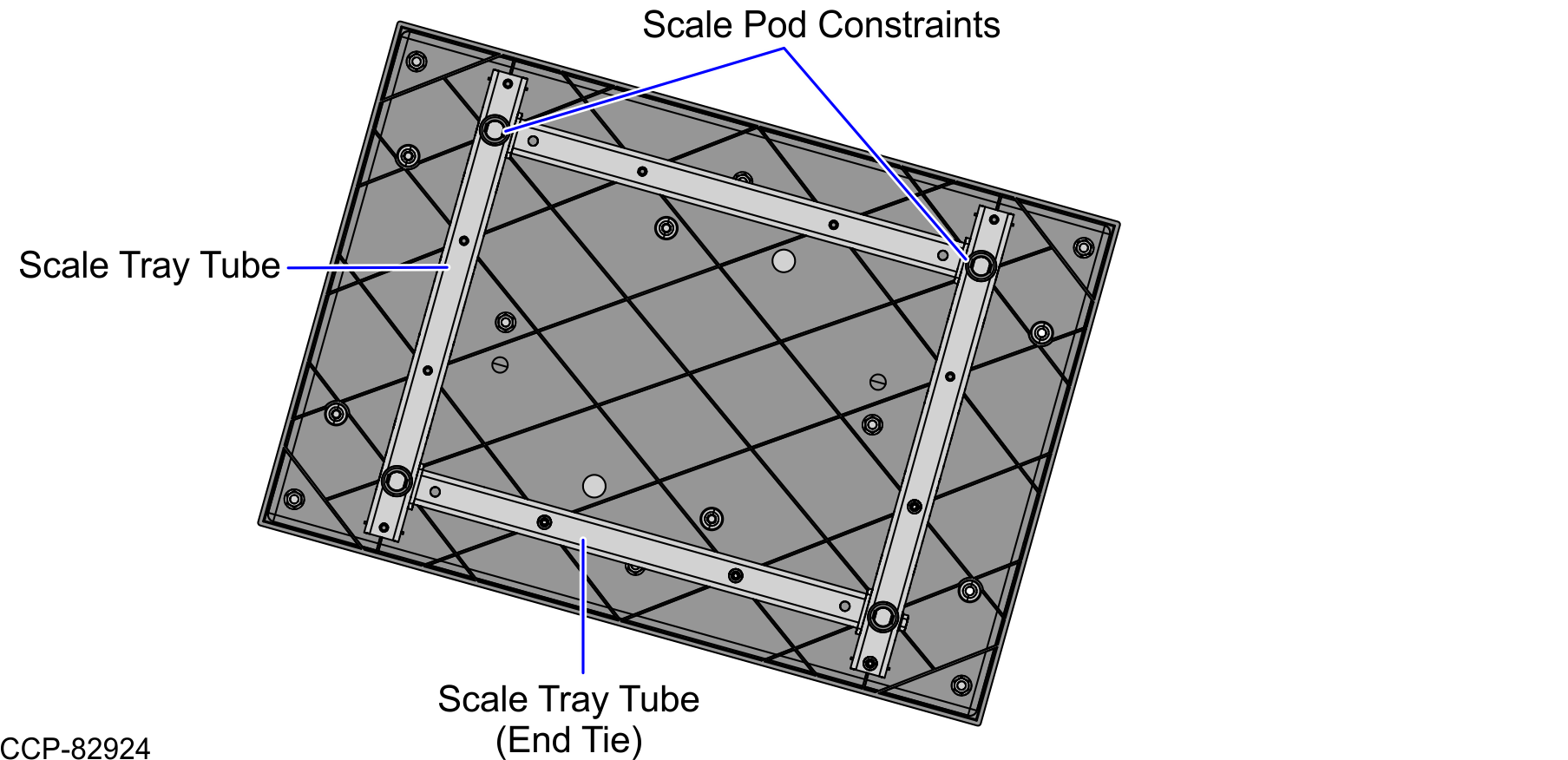 - Remove two (2) Scale Pod Constraints by using your fingers to pull and detach each Constraint from the corresponding cutouts on the Scale Tray Tubes, as shown in the image below.