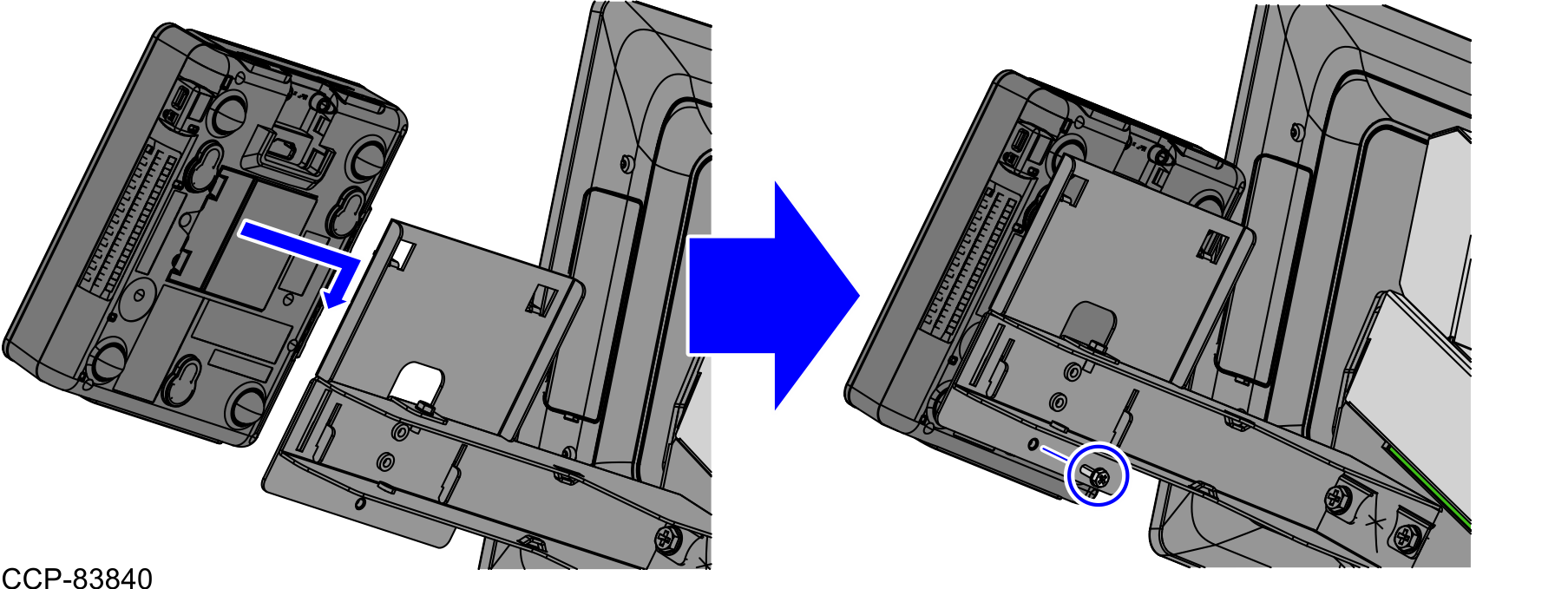 Install the Ingenico ISC250 PIN Pad device onto the PIN Pad Mount and then secure it using an M4 pan head screw, as shown in the image below.