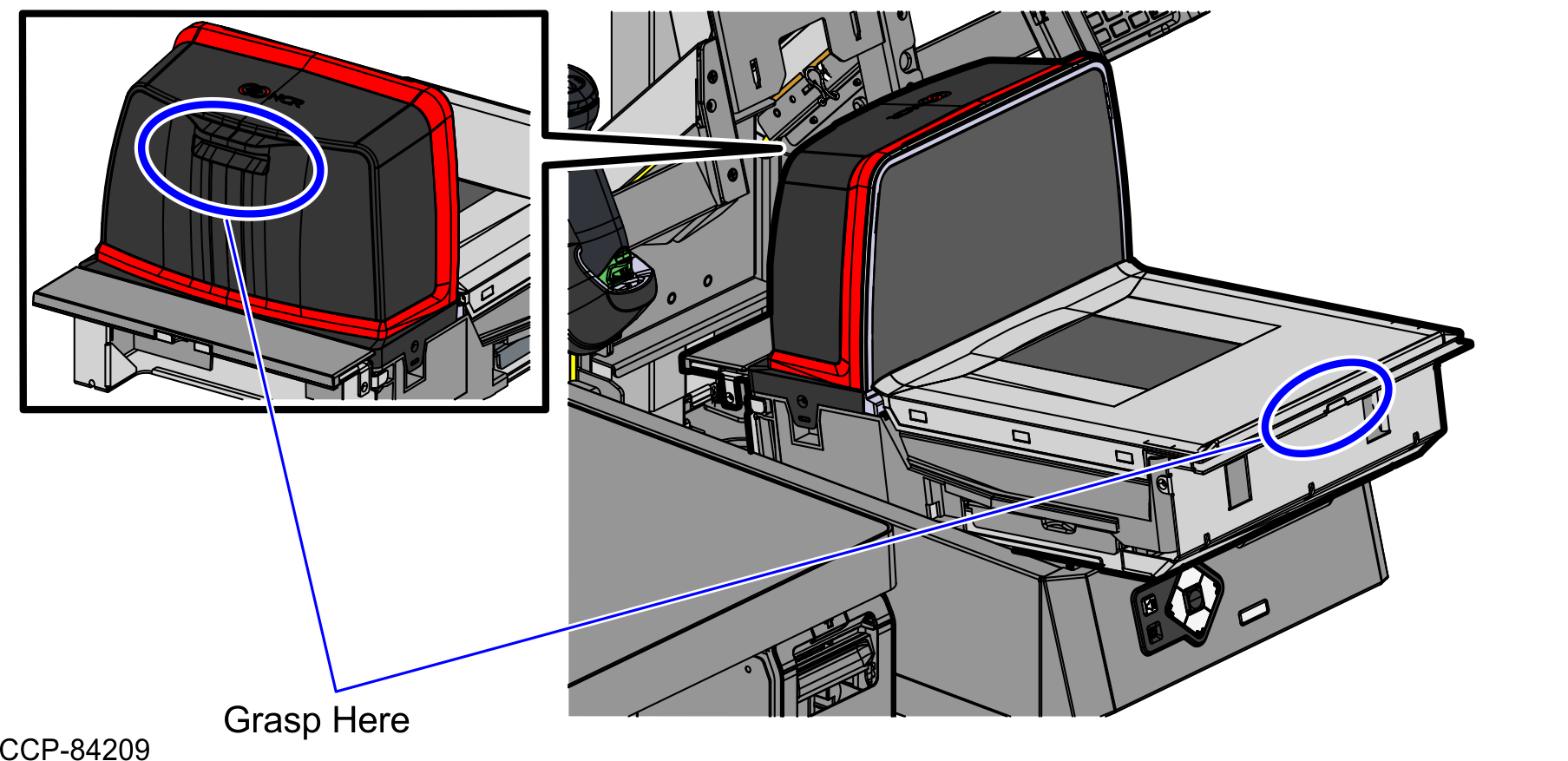 - Verify that the Scanner/Scale Top Plate is correctly aligned with the top of the Scanner Bucket. The sides of the Top PLate must not be higher than the top surface of the SelfServ Checkout unit.Note