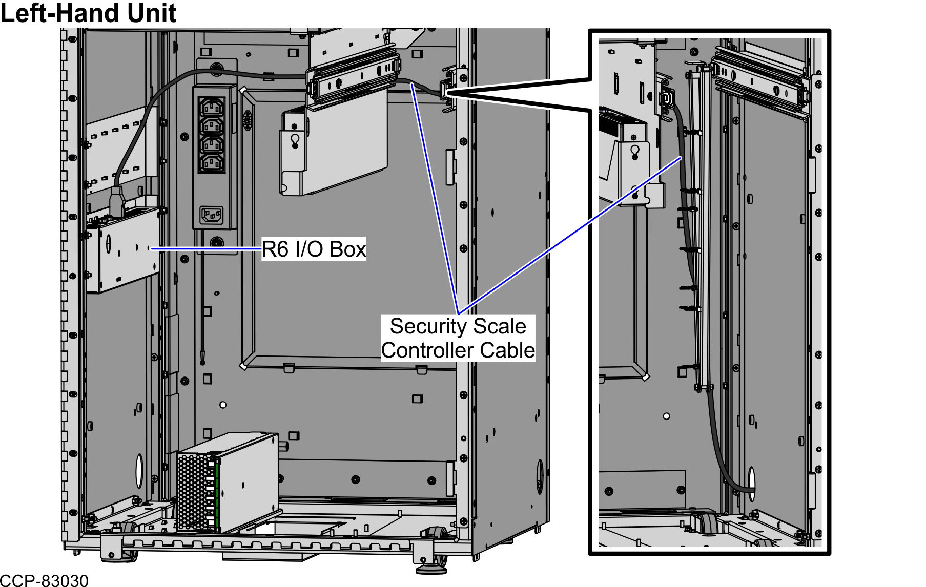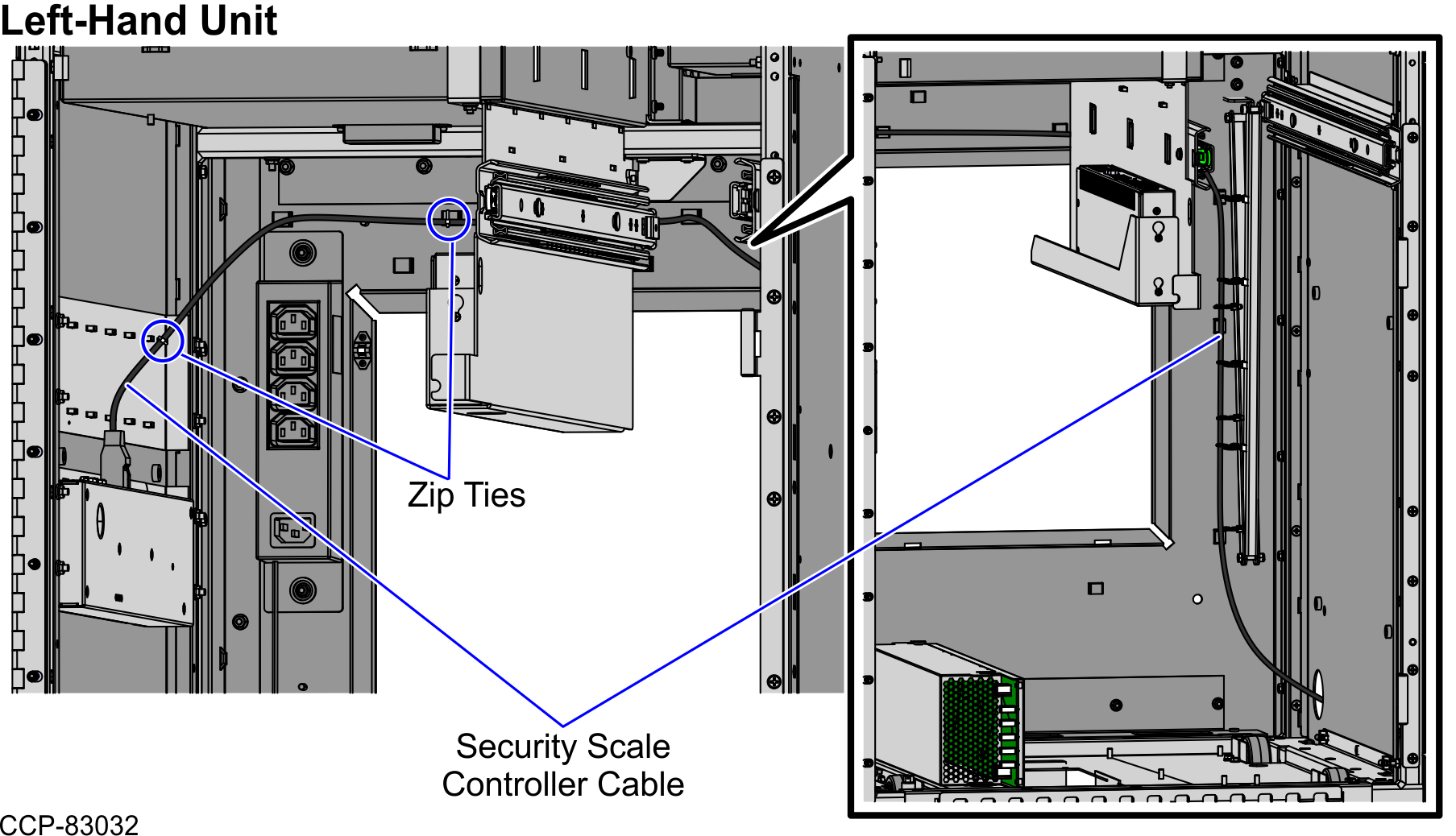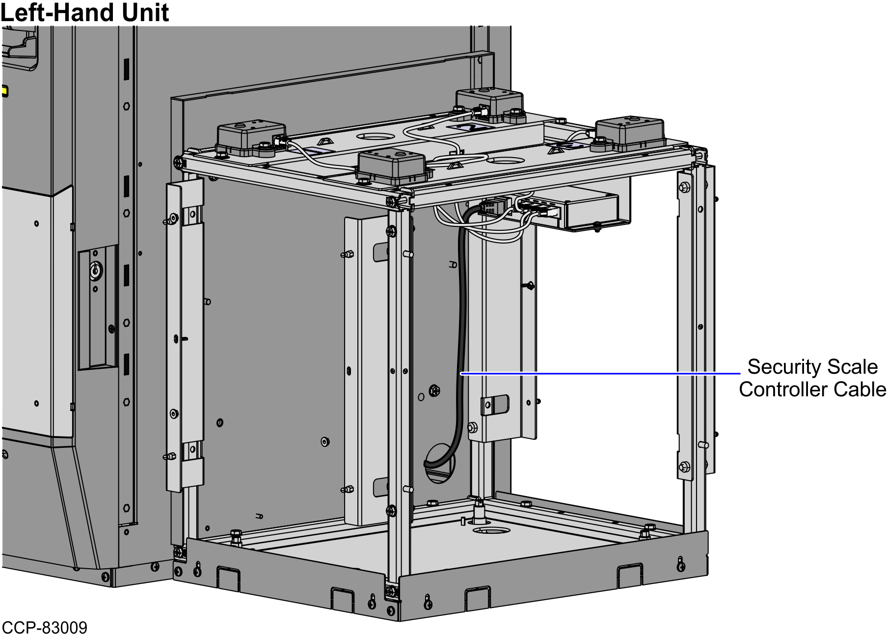 To route the Security Scale Controller Cable in a Left-Hand unit, follow these steps: