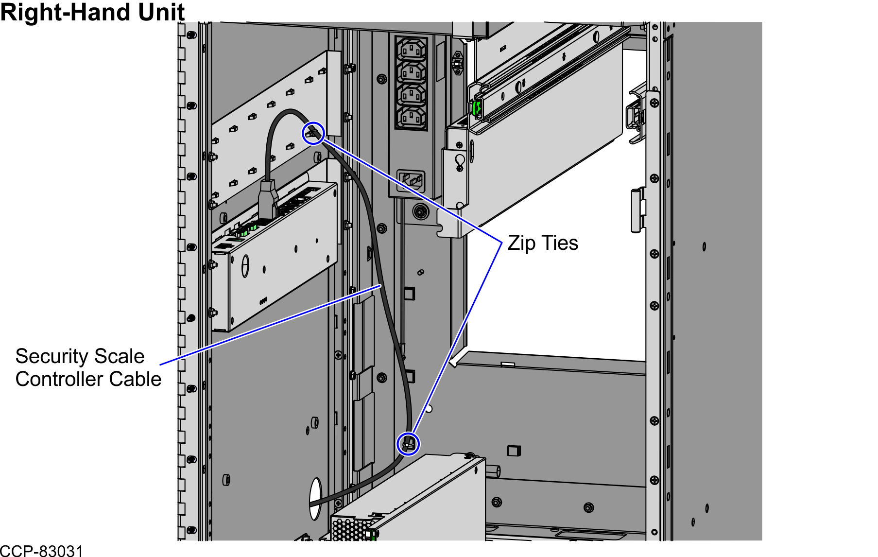 To route the Security Scale Controller Cable in a Right-Hand unit, follow these steps: