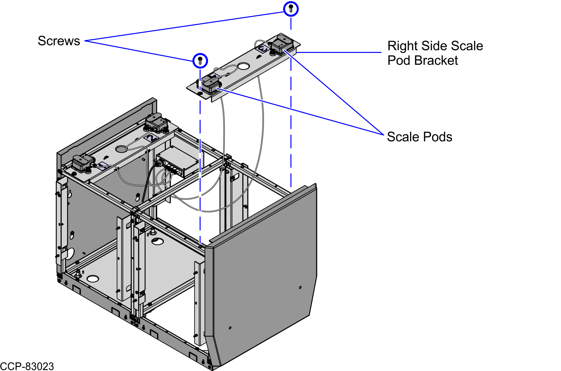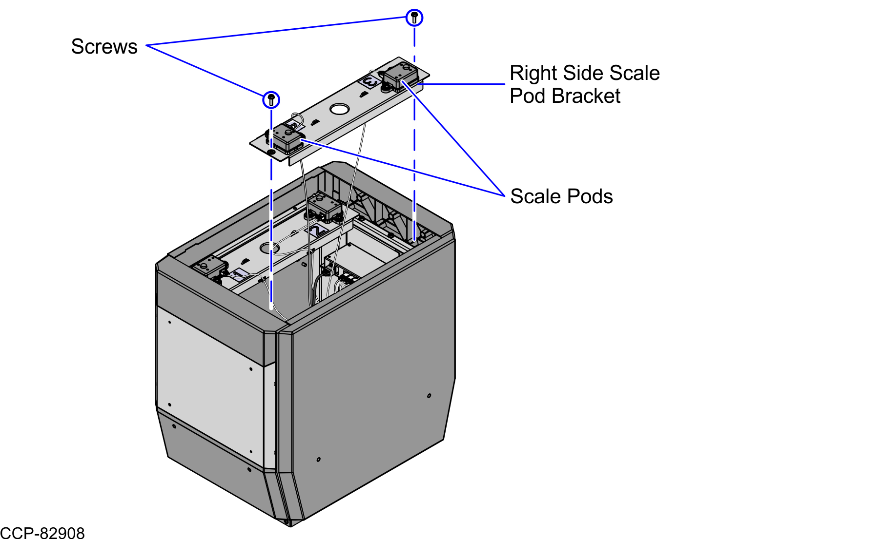 Remove two (2) screws to detach the Scale Pod Bracket, as shown in the image below.