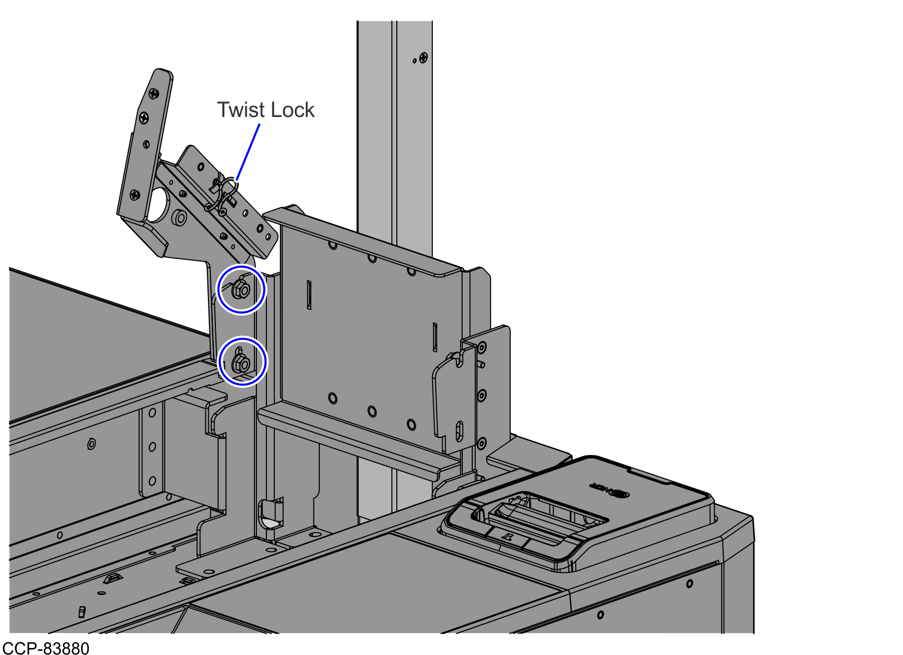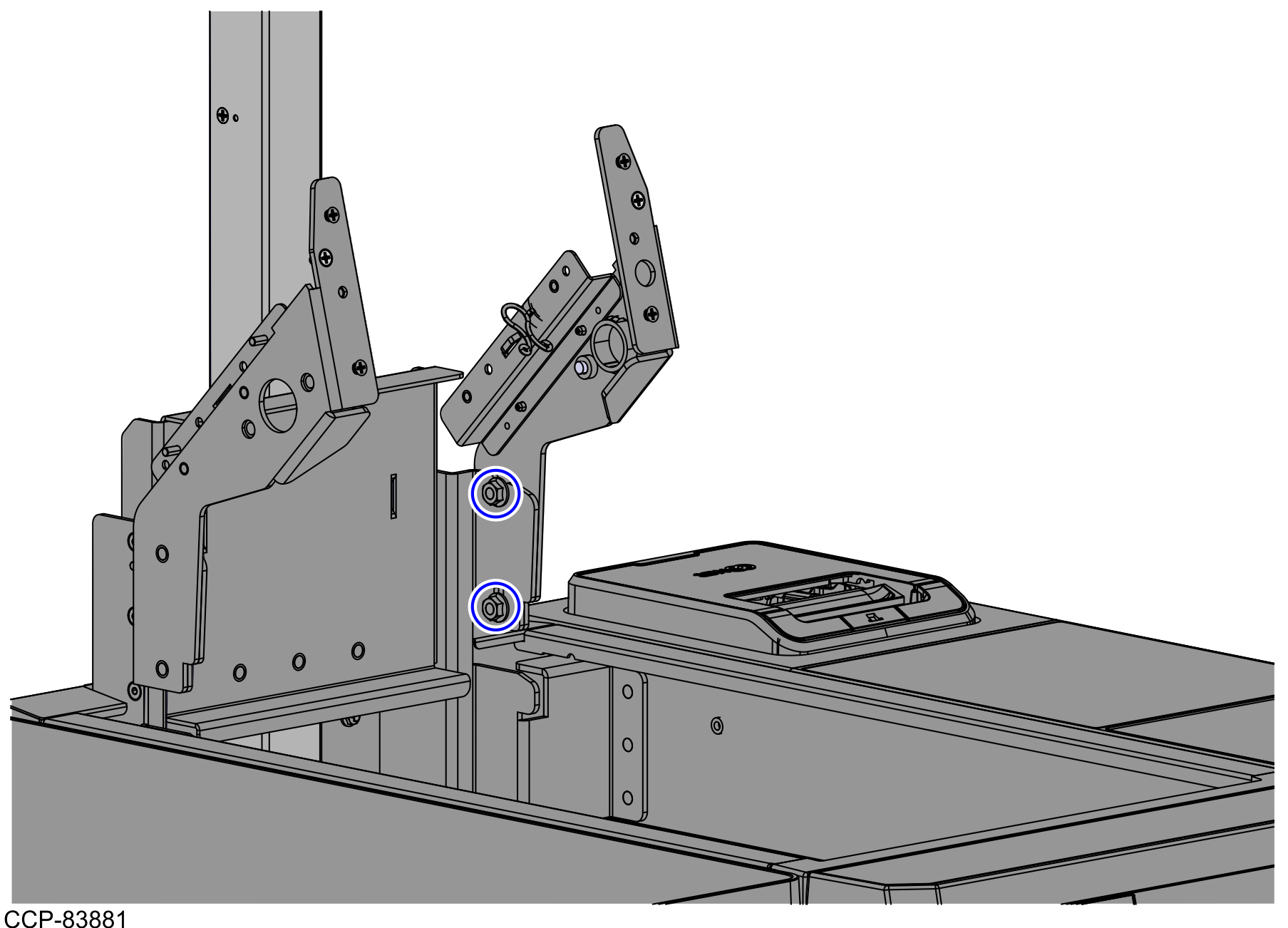 1. Remove and set aside the two (2) nuts to detach the Right Display Support from the frame, as shown in the image below.