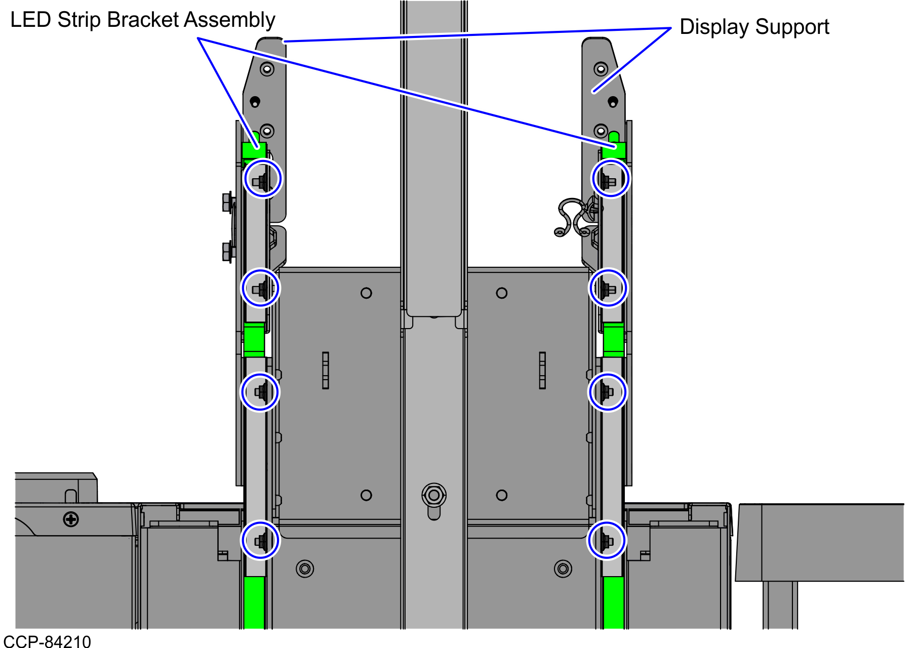 1. Remove four (4) nuts from each sides of the Display Support to detach the LED Strip Bracket assemblies, as shown in the image below.