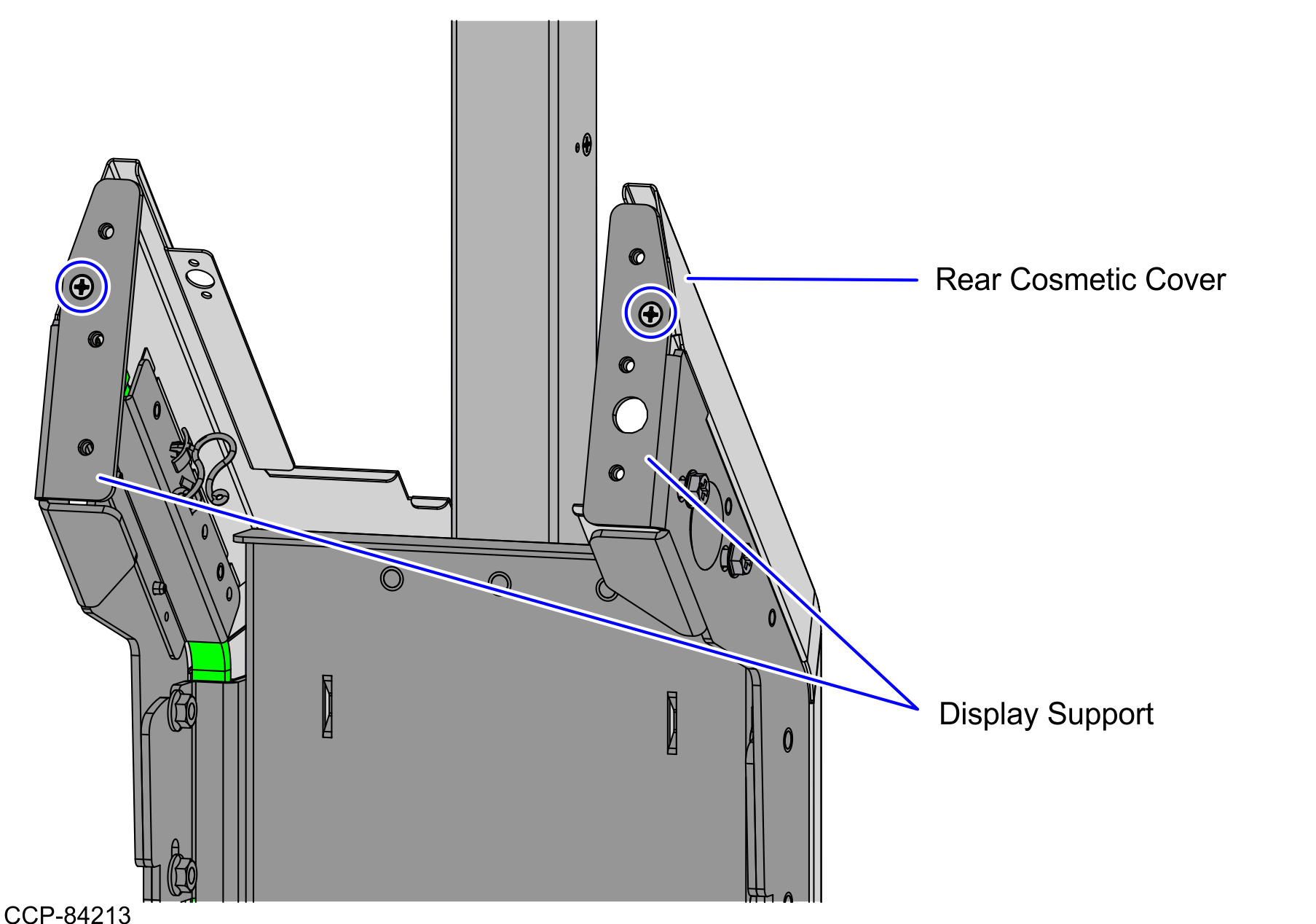 4. Remove and set aside two (2) screws to detach the Rear Cosmetic Cover from the Display Support, as shown in the image below.