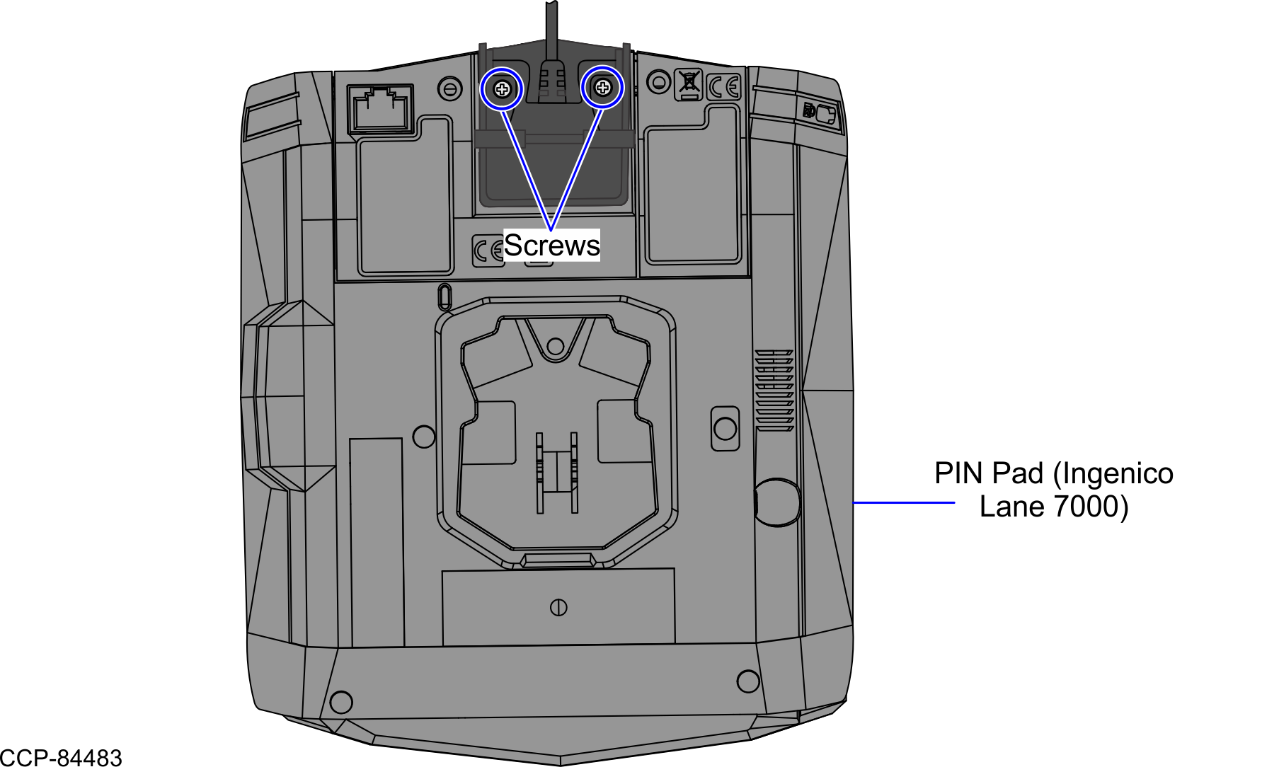 The Ingenico Lane 7000 PIN Pad device is not included in the 7372-K353 PIN Pad Mount - Lane 7000 (Tabletop) Kit. For more information, contact an NCR Customer Service Representative.