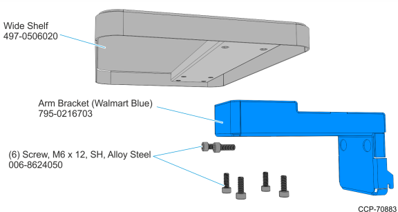 This publication provides procedures for installing the 7709-K437 Wide Shelf (Walmart Blue) to the NCR Voyix SelfServ™ 90 (7709) Kiosk.