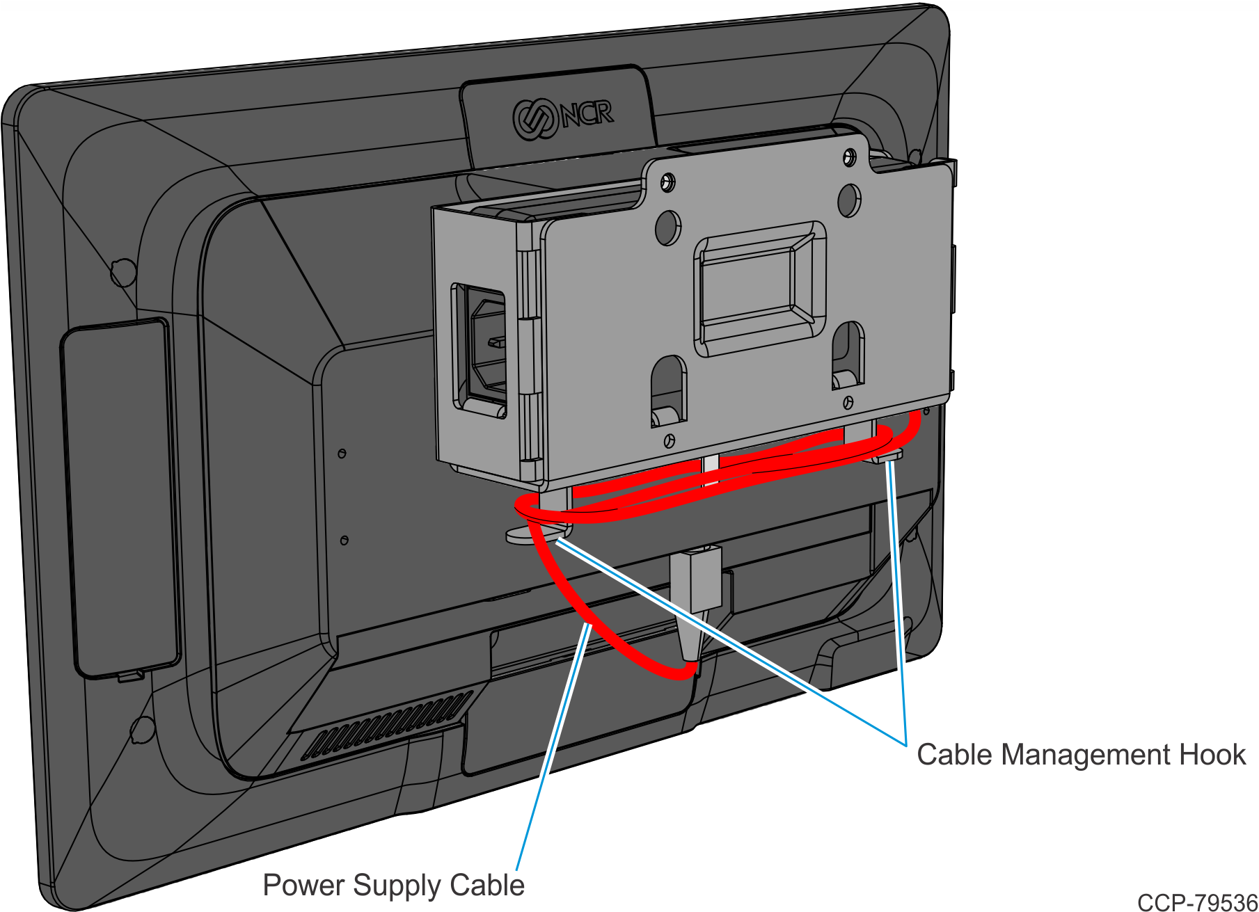 - Wrap the Power Supply Cable around the Cable Management Hooks on the Bracket then connect the Cable to the I/O.