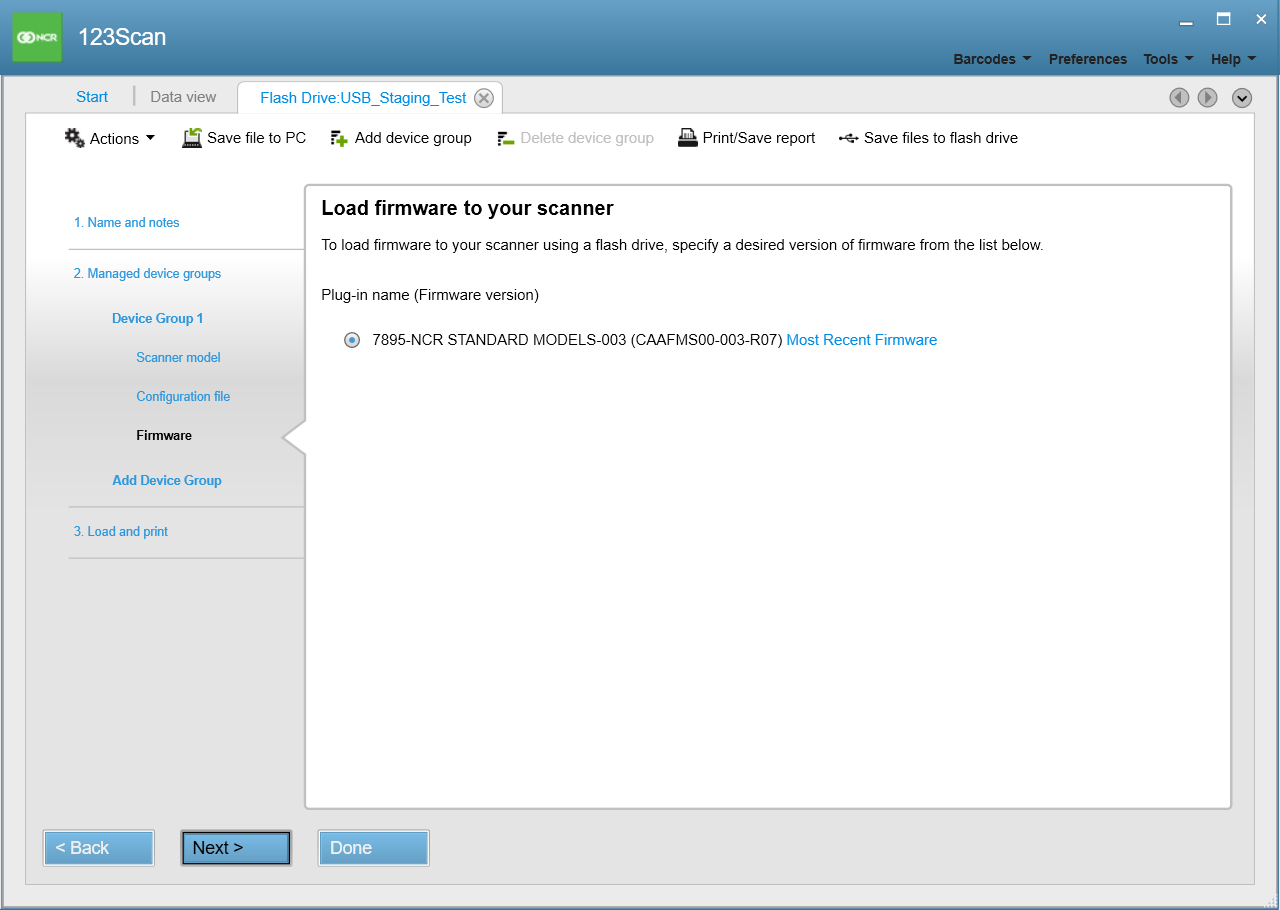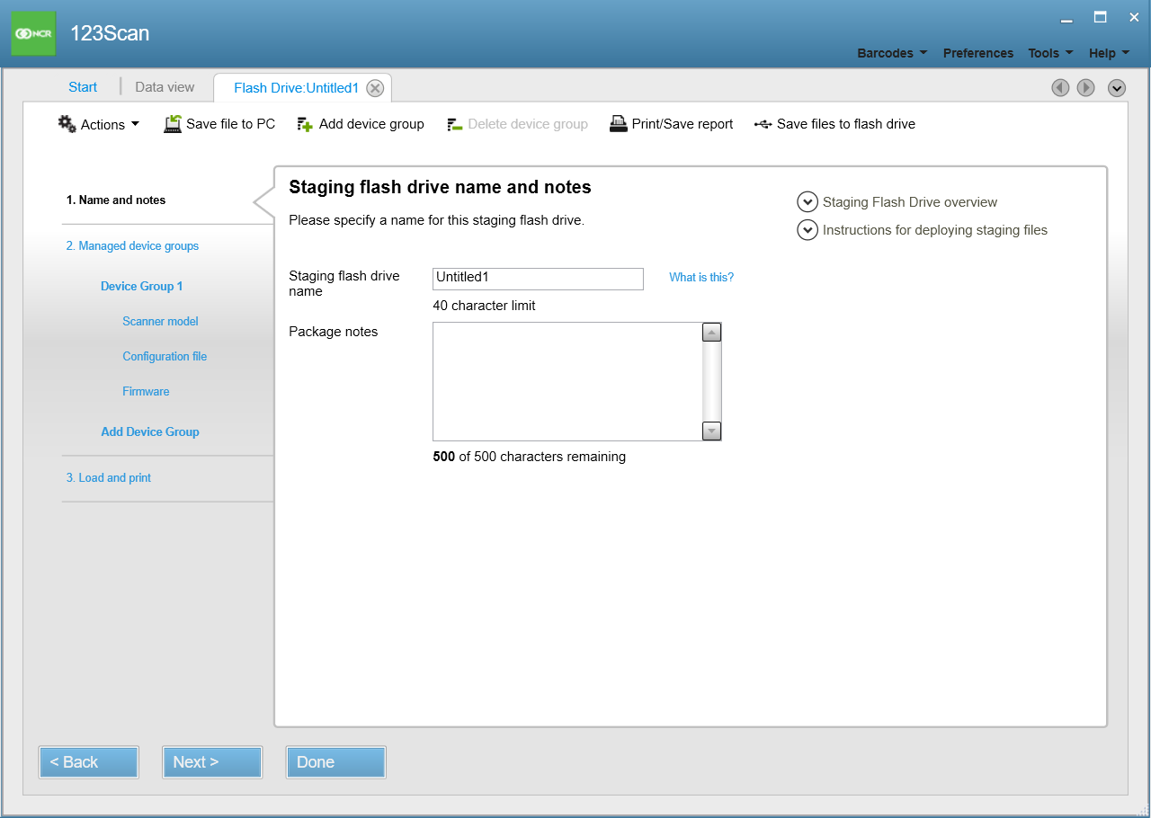 The Flash Drive Wizard option within the 123Scan utility guides users in generating a USB staging flash drive with cloning files.