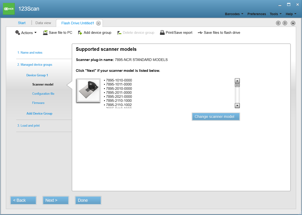- Select 7895-NCR STANDARD MODELS. The application display the list of supported scanner models.