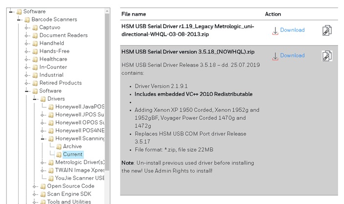 3.Download the following Honeywell drivers from https://hsmftp.honeywell.com/