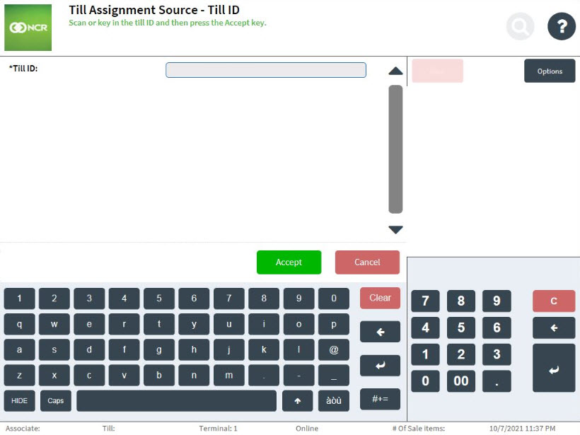 - A till is currently inserted in the terminal.