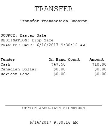 - Select Count Complete. The application completes the transfer transaction and prints the transaction receipt.