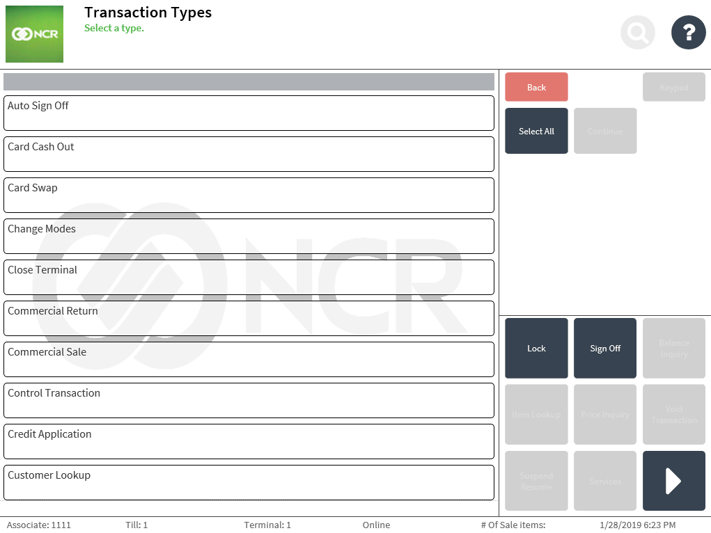 - Select Select All. All the available retail transaction types are selected.