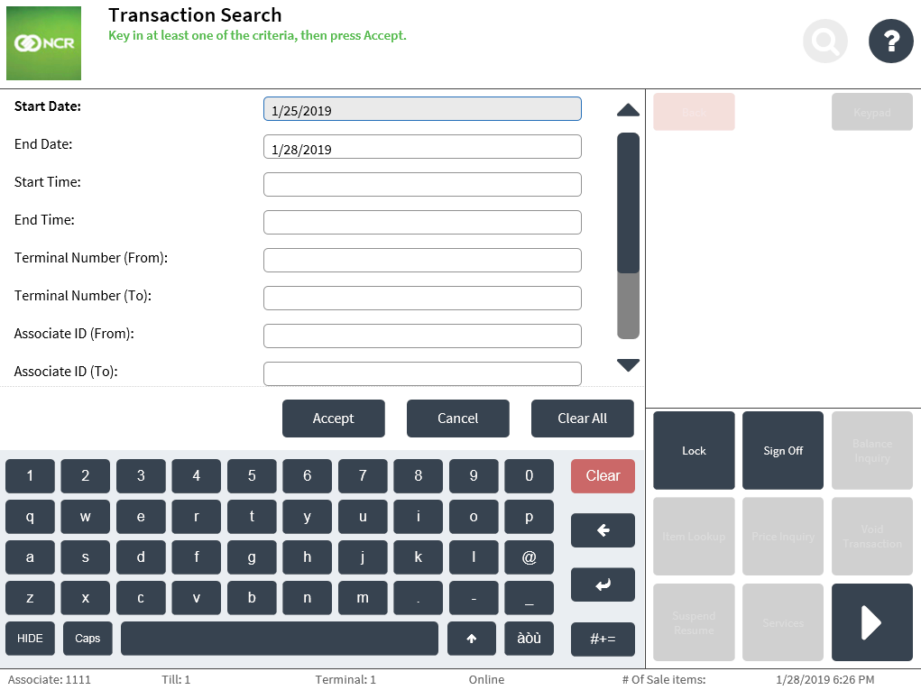 Use the Retail Transaction search category to search for the various types of retail transactions completed in the store.