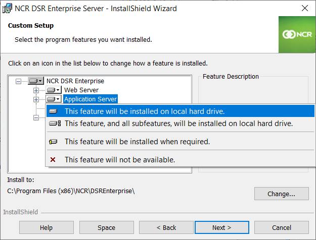 - Select the Application Server and select This feature will be installed on local hard drive.