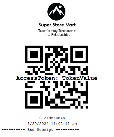 The QR code contains a secure authorization token which is retrieved from the AS Web API Server's existing POST api/v8/Security/Login request response. The QR code can be scanned instead of manually entering a username and password on the POS application.
