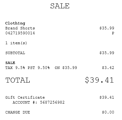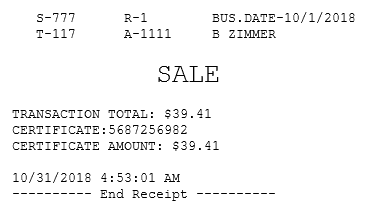 - Scan the gift certificate bar code, or enter the gift certificate number and select Enter.