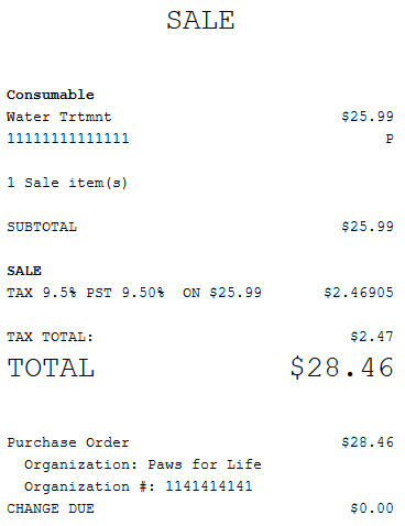 Sales receipt with purchase order information