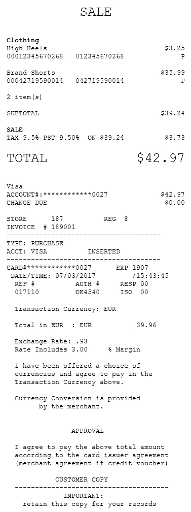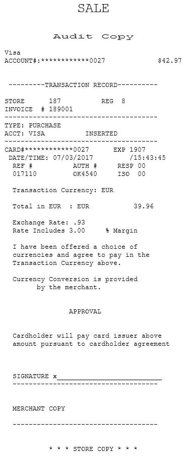 Customer copy of a transaction receipt using Dynamic Currency Conversion