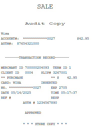 Audit copy of a transaction receipt using the Japan NCR Payment Client