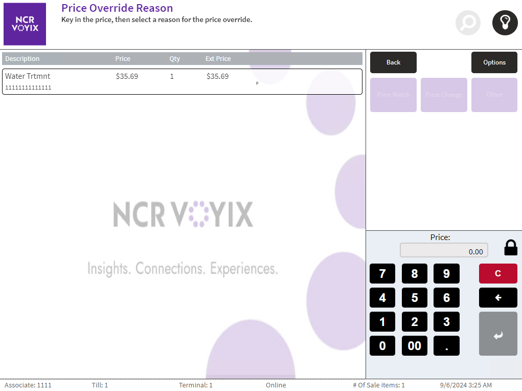 - Select Price Override. The application displays the Price Override Reason screen.Note