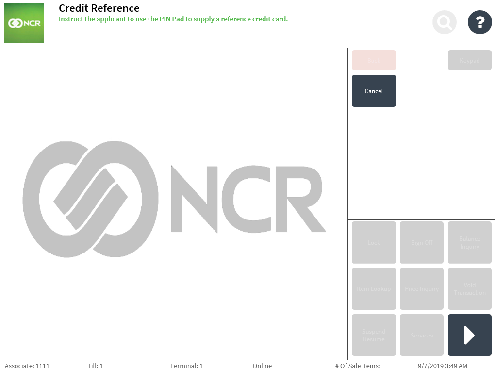 - On the POS global buttons, select Credit Application. The application displays the Credit Reference screen.