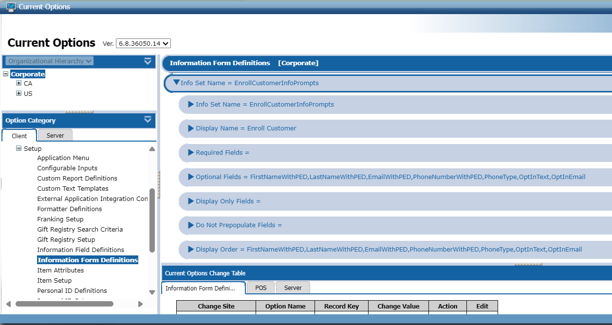 - Setup > Information Form Definitions > Info Set Name = EnrollCustomerInfoPrompts