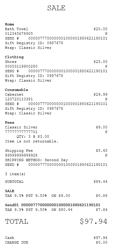 - On the Send Gift Registry  confirmation screen, select Yes.  The application displays the Gift Registry Shipping Information screen.