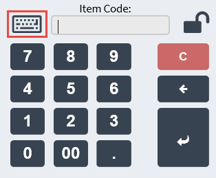 - Select Keypad on the upper-right section of the screen. A keyboard icon is displayed beside the Item Code input field, as shown in the following image.